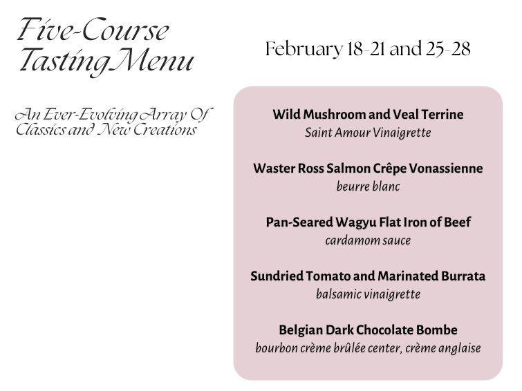 The contemporary American and classic French cuisine is perfect for an important business dinner, a special celebration, or simply to celebrate life and treat yourself to an elegant evening out!