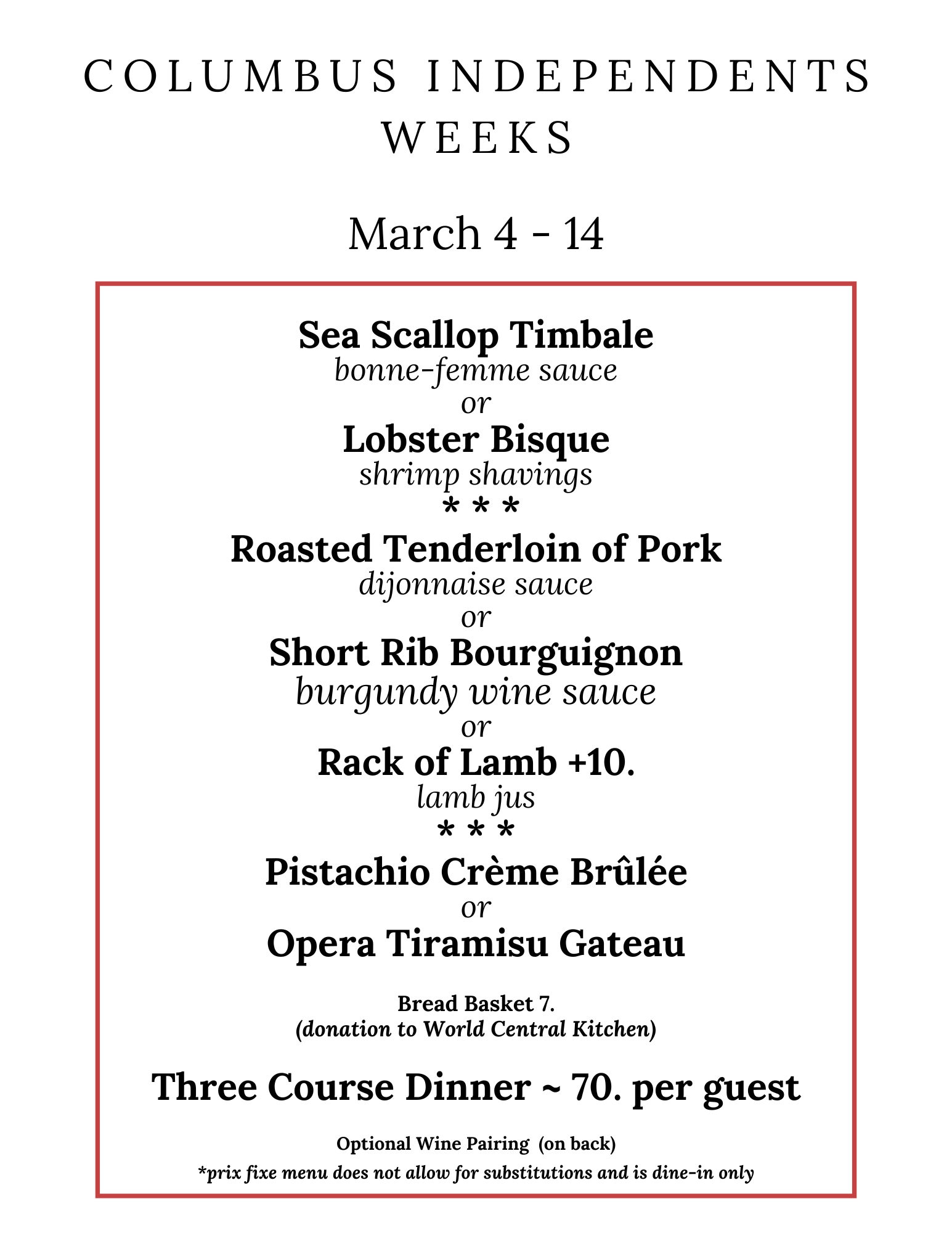 This is the perfect opportunity to explore our cuisine, revisit a favorite dish, or introduce someone new to an unforgettable evening of fine dining — all while celebrating and supporting Columbus’ independent restaurant community.