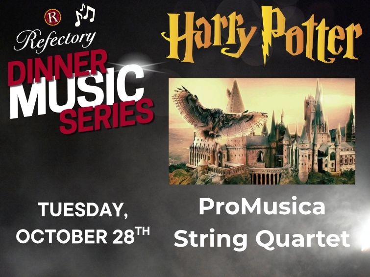 Join us for an unforgettable evening of fine dining and entertainment. Begin with a delectable four-course dinner prepared by Chef Richard, followed by a private concert in our beautiful Dining Room or intimate Choir Loft.