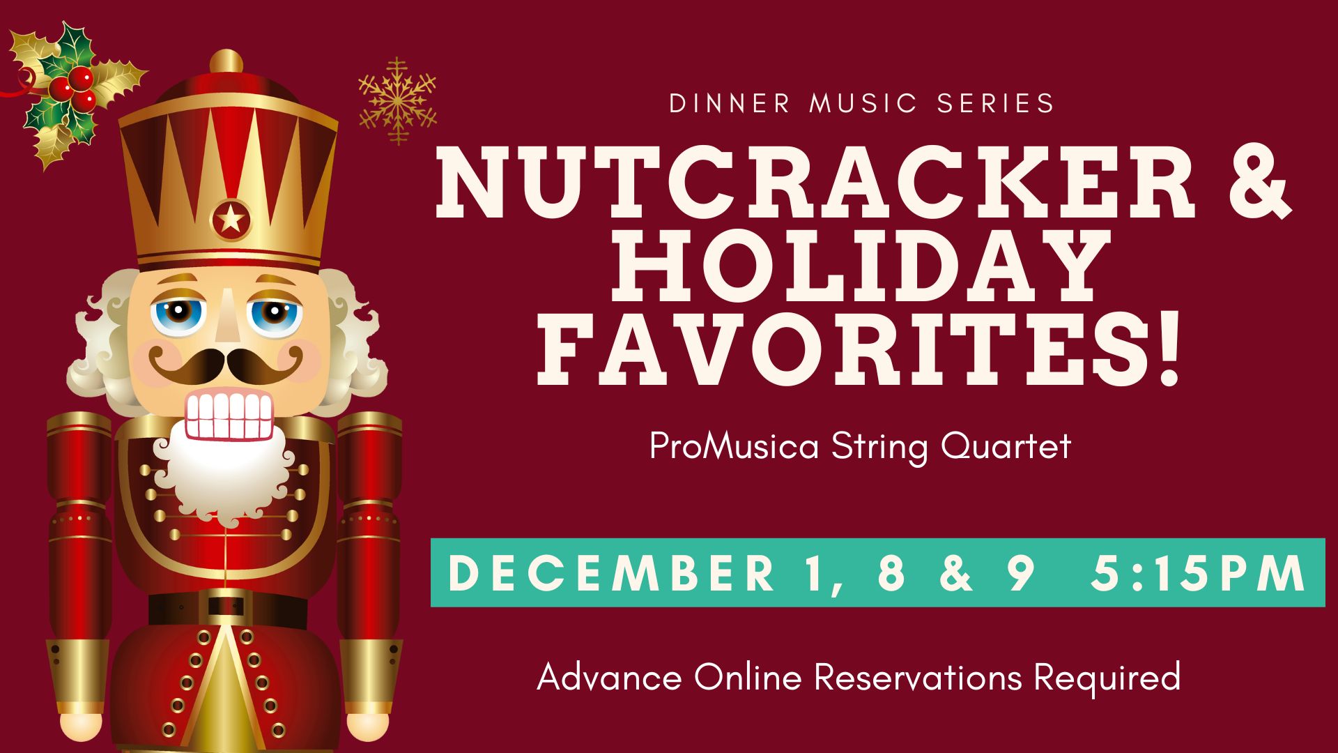 Mon December 1 @ 5:15 pm - 8:00 pm String Quartet: The Nutcracker The Refectory Restaurant 1092 Bethel Rd., Columbus, OH, United States . . . Read More $160