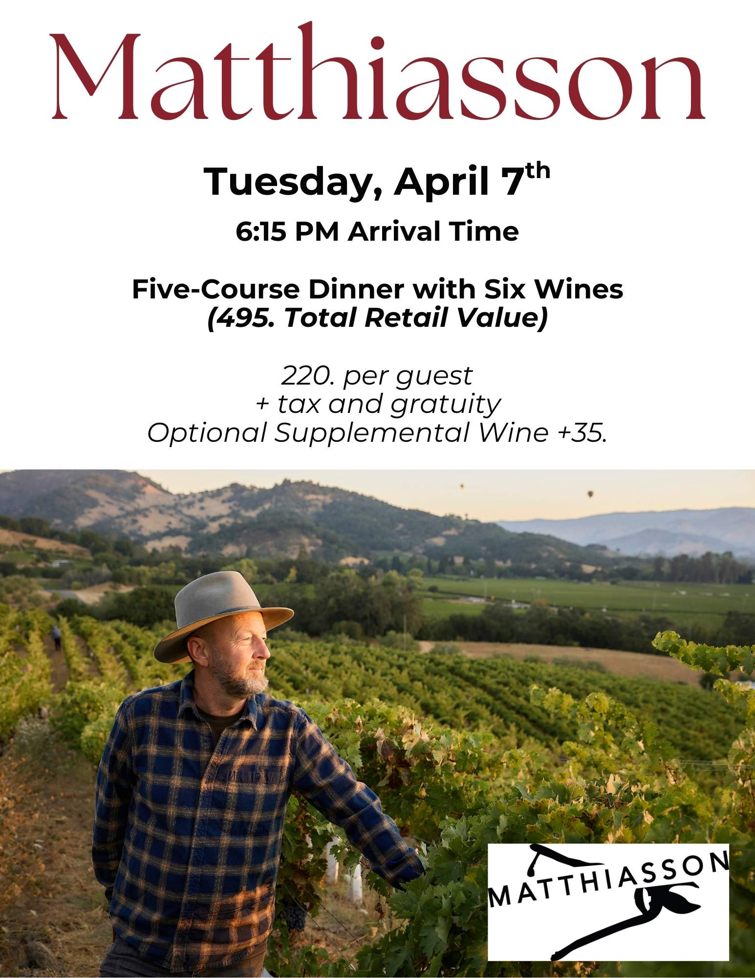 3 events found. Events Events Search and Views Navigation Search Enter Keyword. Search for Events by Keyword. Find Events Event Views Navigation Photo List Month Day Photo Week Map Today Upcoming Upcoming Select date. List of events in Photo View Matthiasson Wine Dinner Apr 7 Matthiasson Wine Dinner 6:15 pm - 8:30 pm $220 An Evening Aboard The Titanic Apr 13 An Evening Aboard The Titanic 5:15 pm - 8:00 pm $165 Summer Vacation: Sounds of Italy, France, and Spain May 4 Summer Vacation: Sounds of Italy, France, and Spain 5:15 pm - 8:00 pm $150 Previous Events Today Next Events Subscribe to calendar Google Calendar iCalendar Outlook 365 Outlook Live Export .ics file Export Outlook .ics file