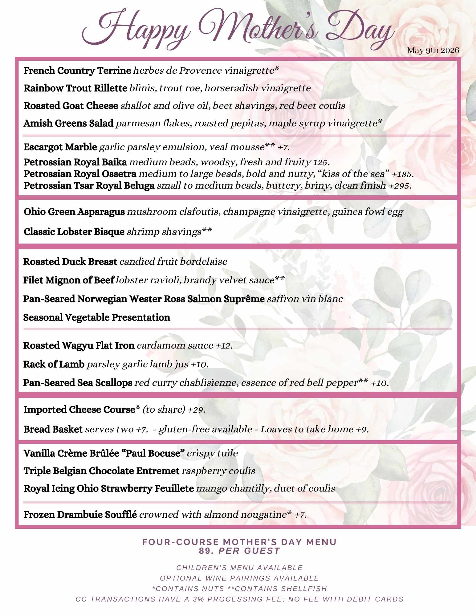 Mother's Day Menu